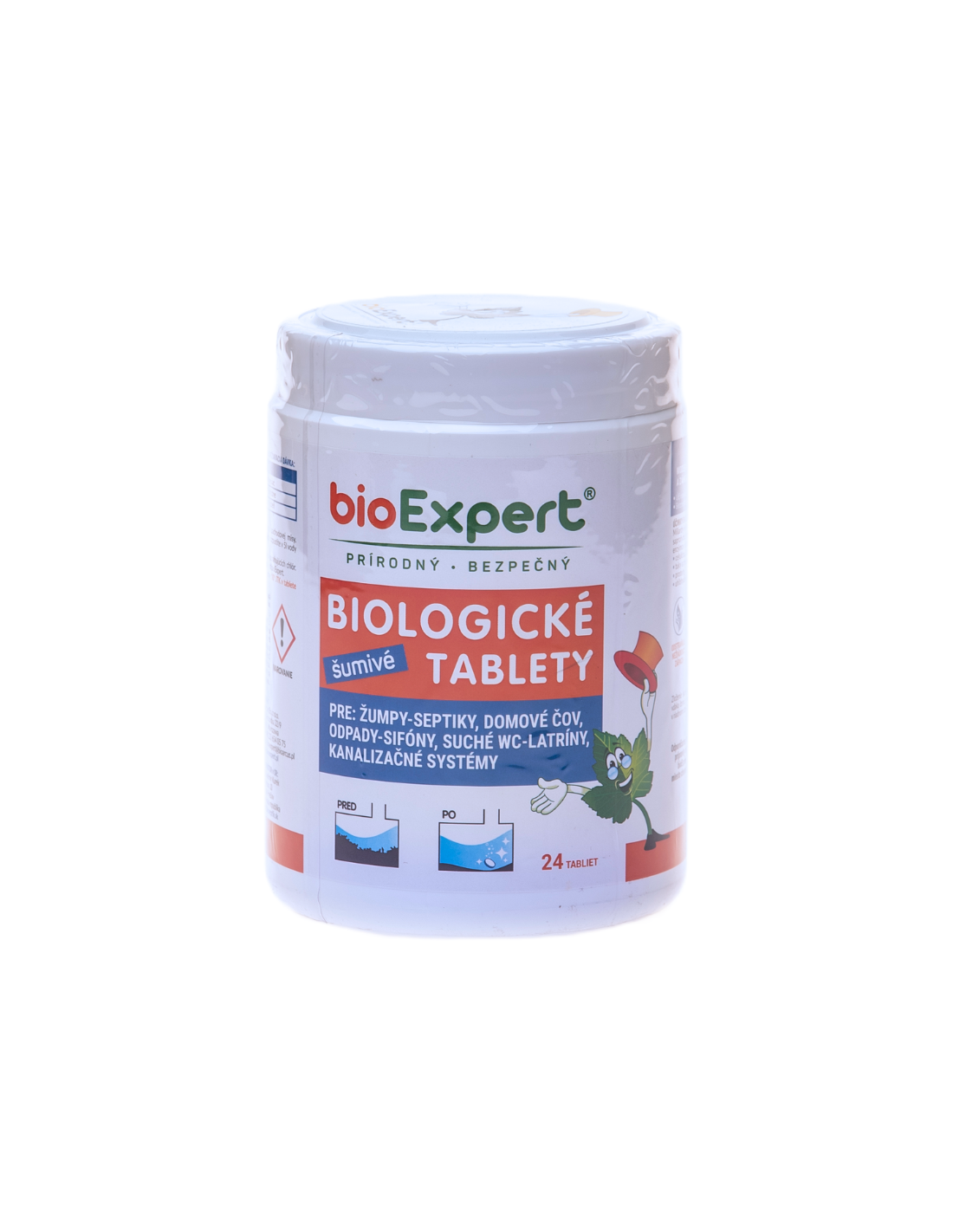 Živé baktérie Bioexpert pre domové čističky, žumpy a septiky vo forme šumivých tabliet s jednoduchým a extra účinným použitím. Tabletu vhoďte do toalety, nechajte vyšumieť a spláchnite alebo ju vhoďte priamo do nádrže.